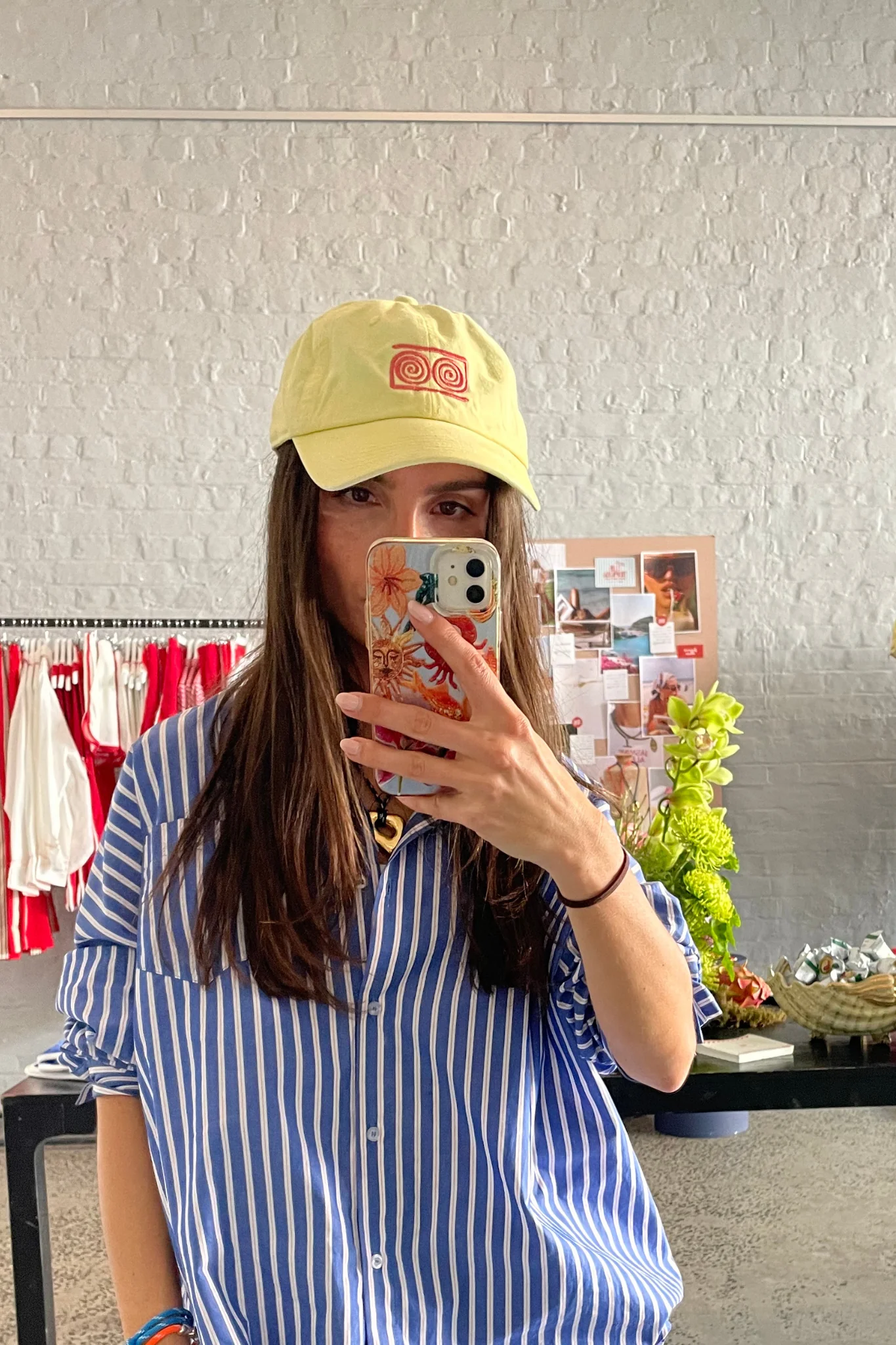 Discover the Paradiso Cap Yellow—your go-to accessory for effortless style and comfort. Constructed from breathable 100% cotton, this classic dad cap features a striking embroidered swirl design on the front and our logo on the back, giving you a polished look that works with any outfit. Whether you're protecting yourself from the sun or adding that final touch to your ensemble, this cap delivers quality craftsmanship and versatile appeal.
